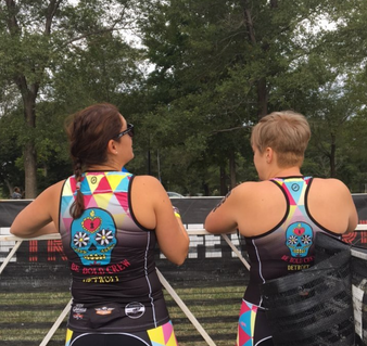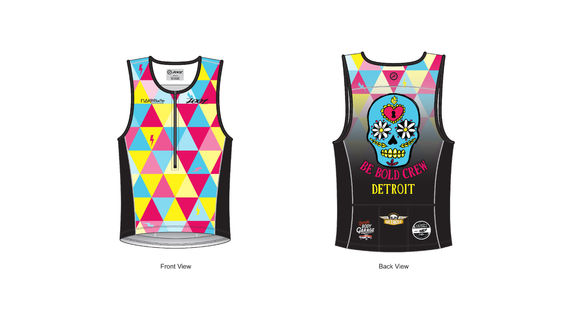 This kit was designed based on Terra's sugar skull logo using similar color and style. There is nothing better than getting complimented on a kit you designed while slugging through that last 3.1 miles in the 100 degree Chicago summer.